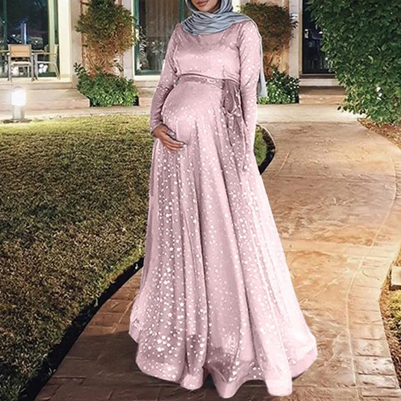 *Item Description:Muslim; Fashion; Slim; Digital Print; Long Sleeve; Maternity Party Dress Gown